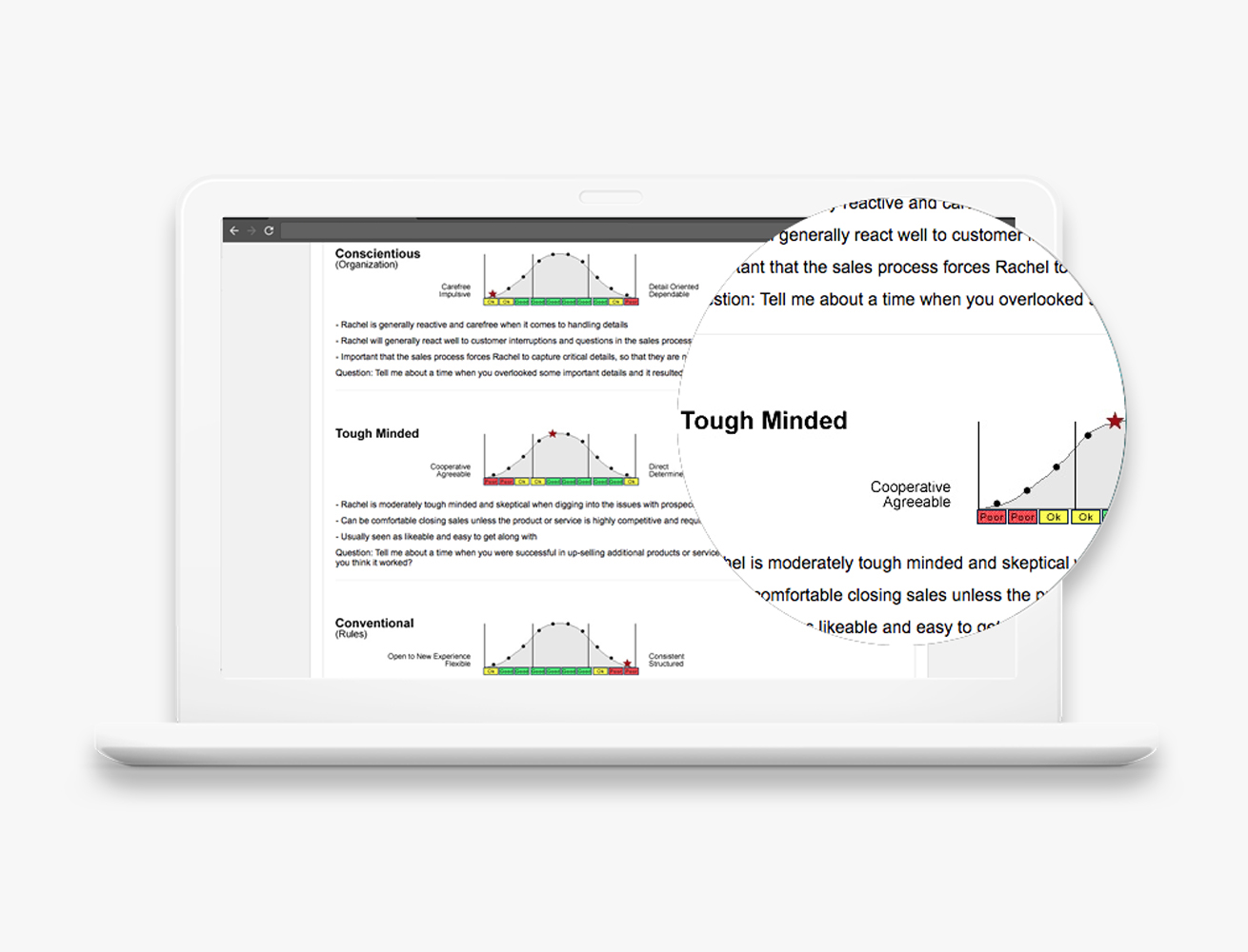 Assesses social warmth and directness. “Likeable” people are cooperative and empathetic; “Tough-Minded” types are more skeptical and straightforward.